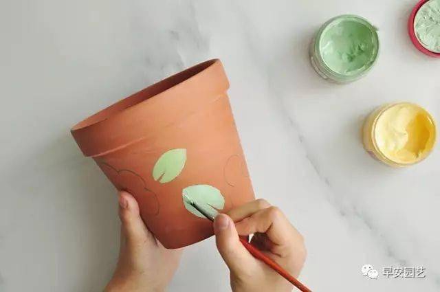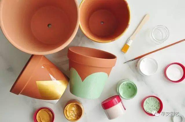 标准款的红陶花盆长得都一样,如果对它们橙红色的外表产生了审美疲劳,不妨使用丙烯颜料给它来个小小的改造,为你的小花园增添一抹不一样的小景致。