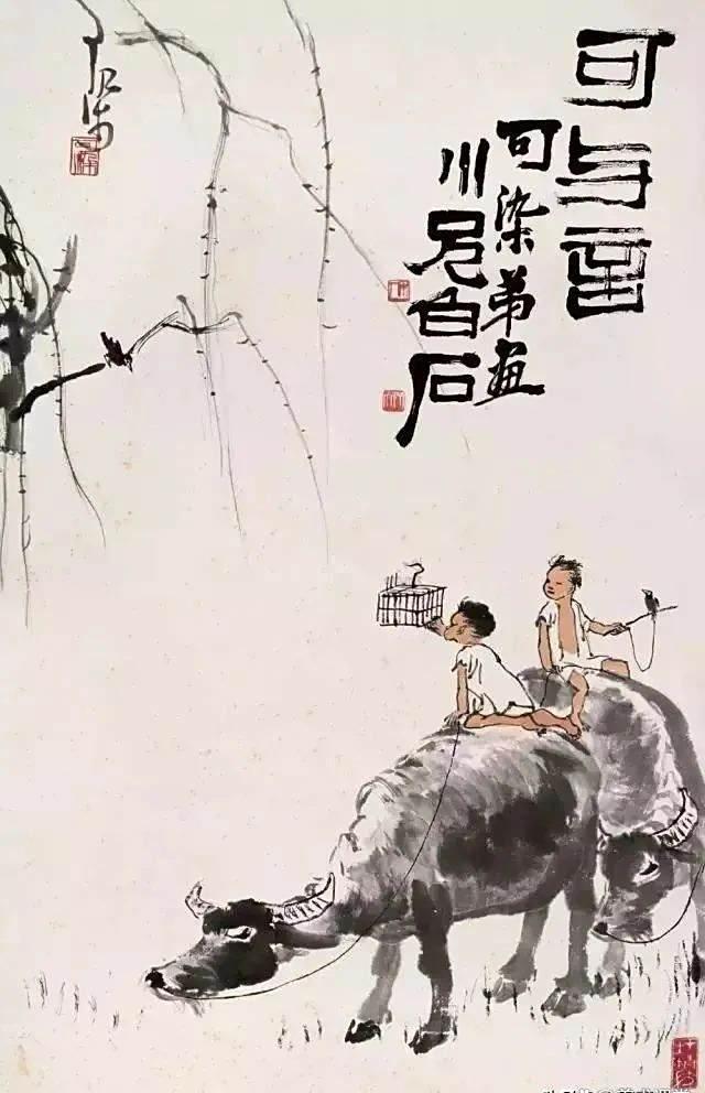 李可染画好一幅关于牛和牧童的画,牧童头发、鸟笼门等细节生动,充满乡野情趣。他拿给齐白石看,齐白石未在主题绘画上添一笔,仅题 11 字并加盖二方印章,最终这幅作品拍出近 8000 万高价 。
